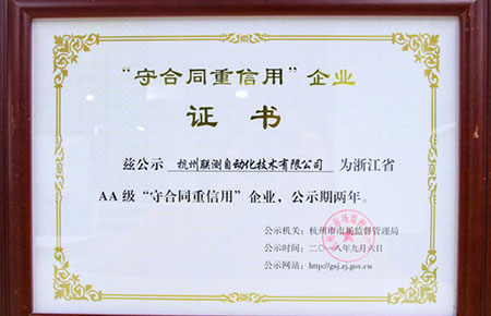 2018年11月23日,我司受邀來到杭州開發區市民中心(和茂大廈)參加2018年守重企業表彰大會,并榮獲浙江省AA級“守合同重信用”企業。