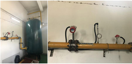 在這次工況上,聯測生產的渦街流量計應用在100口徑壓縮空氣主管道上進行計量。由于單層紙張輕薄用人工難以精準拉取到工位上,金紅葉研發自動工位裝置,通過連接主管道的壓縮空氣支管,進行精準噴氣定位紙張位置。由于支管管徑較小,用氣量無法精準控制,聯測工程師與金紅葉協商,最后決定在總管道上安裝渦街流量計,進行壓縮空氣精準計量。