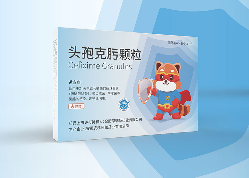 合肥恩瑞特藥業(yè)頭孢克肟顆粒兒童用藥包裝設計