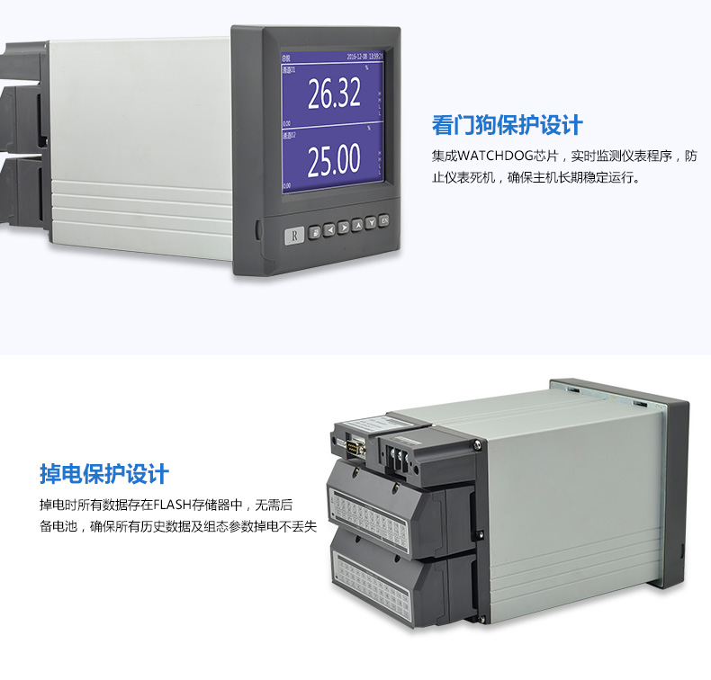 無紙記錄儀是將采集的數據/運算數據以時間為基軸記錄在儀器內部的存儲系統中,無消耗任何常用的記錄設施,如:紙張、筆墨。記錄在儀器內部的存儲數據,通過運算、模擬后顯示在液晶屏。常用顯示用液晶屏比較廣泛。在液晶屏屏幕上,可以顯示數字顯示、棒圖顯示、曲線顯示、報警列表等。無紙記錄儀采集的數據,常用的有:溫度、壓力、流量、液位、電壓、電流、濕度、頻率、振動、轉速等。